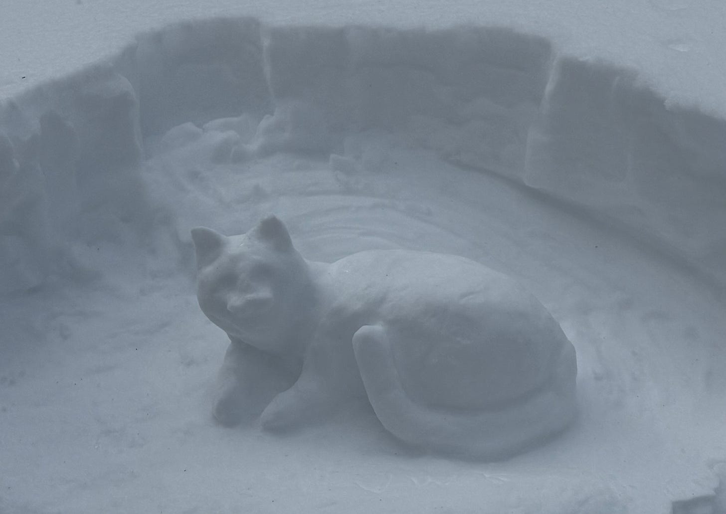 All that said, keeping spirits up is hard. I’m back in Lawrence for the weekend, helping care for a very old dog, which is sad and annoying and I think she’ll pull through this round but she’s the equivalent of 100 and I’m still not over losing the last dog but there is love, not just for dogs, and take this cup, as it were. Last night, I fiddle with these pictures, go to bed, sleep in, and wake to another war. Or special military operation. Or negotiating ploy. Whatever we want to call it. That’s ok, so long as we can give weapons autonomy to systems that are opaque and cannot be audited, much less proven, but we believe (?) they are right, in real time, about the world of which they have no model. The idea that secularism is possible grows darkly funnier every day. Madness abounds. So it’s time for a snowman. Who has launch codes, probably.